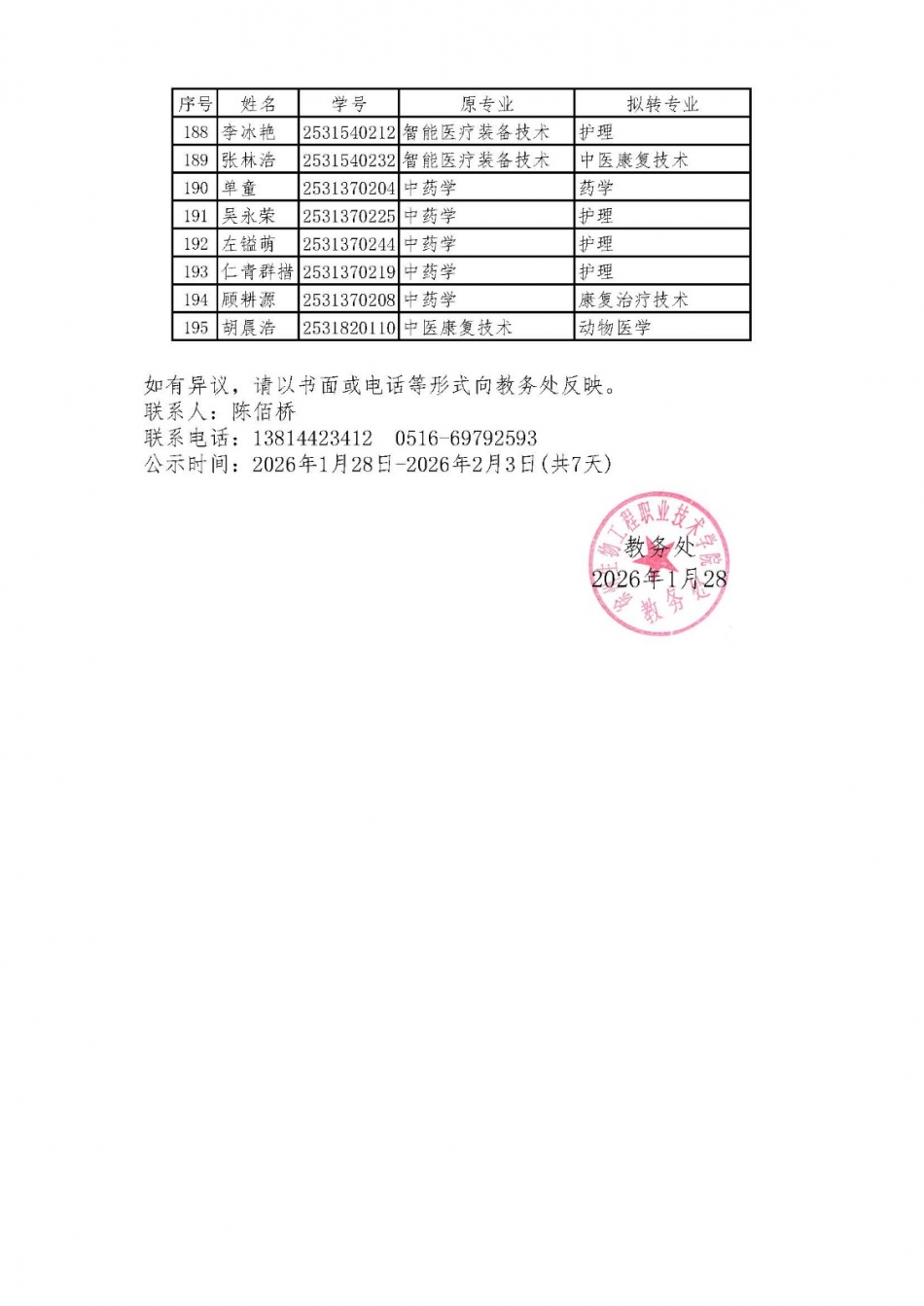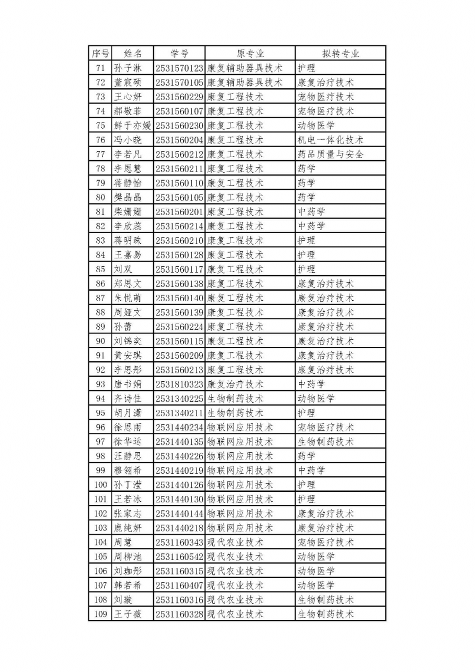 转专业公示